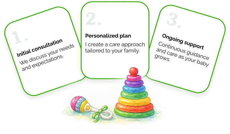 My services include newborn care, sleep guidance, feeding support, and overnight care — all designed to help you feel confident, supported, and well-rested during the early stages of parenthood.